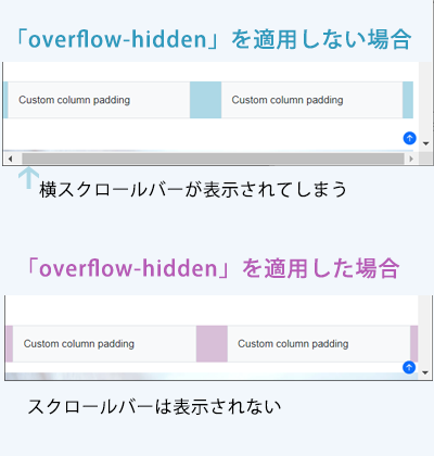「overflow-hidden」を適用しない場合は、横スクロールバーが表示されてしまいます。